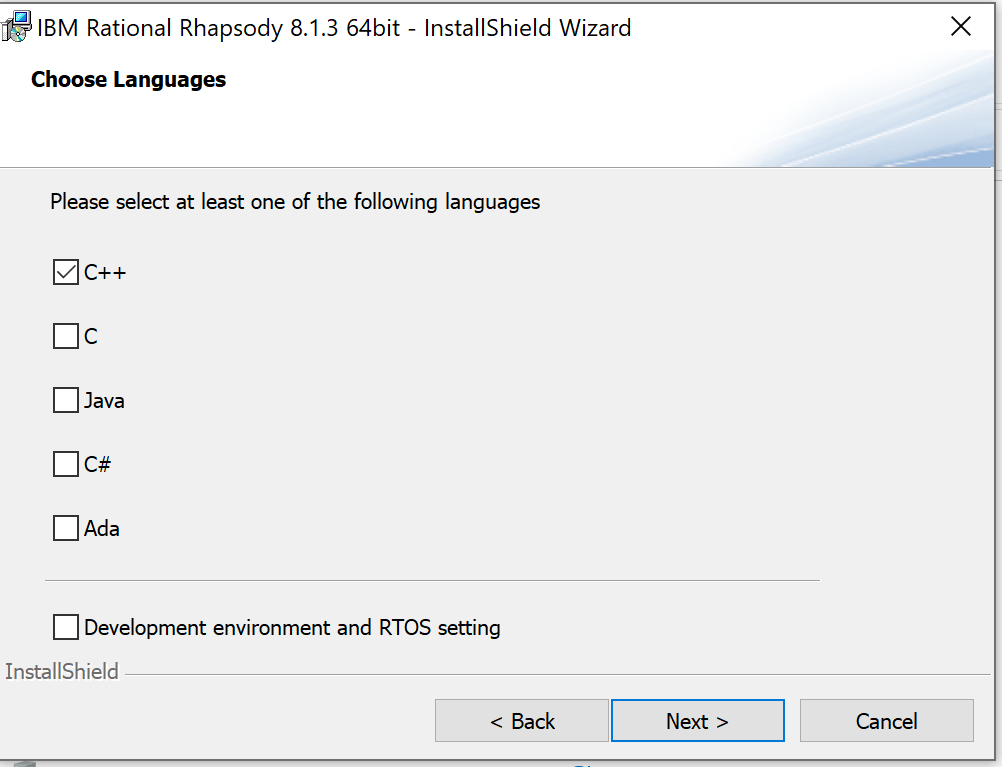 - (Visual Studio): If you want Rhapsody to support C# or Visual Basic, you will need to install Visual Studio before Rhapsody installation.