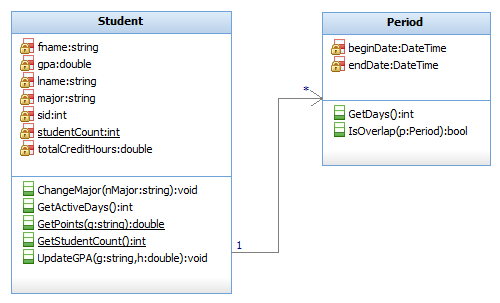 - Student with sid, sname, major, gpa, and birth date as instance data members and school and student count as class-level static data, and getGPA(), getMajor(), ChangeMajor(newMajor) as instance operations and GetSchool() and GetStudentAcount() as class-level static operations (Testing: create three student instances, to test instance operations and static operations)