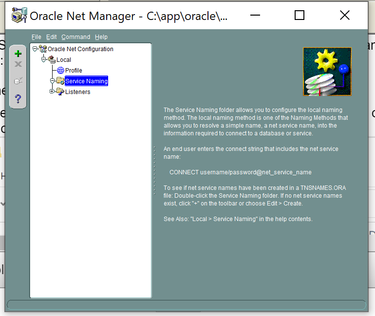 5. Now, we need to configure host strings to connect to Oracle servers. Go to Start and open Network Manager program. Click on + sign in front of Local to expand Local (see below):