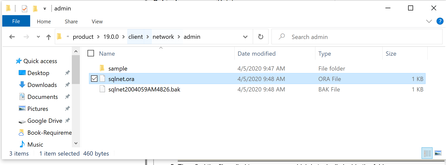 Instead of the above Steps 5-10, you can create file called tnsnames.ora (using notepad) and put it inside the folder c:\app\oracle\product\19.0.0\client\network\admin (depending on your choice of installation location in Step 4).