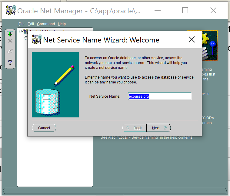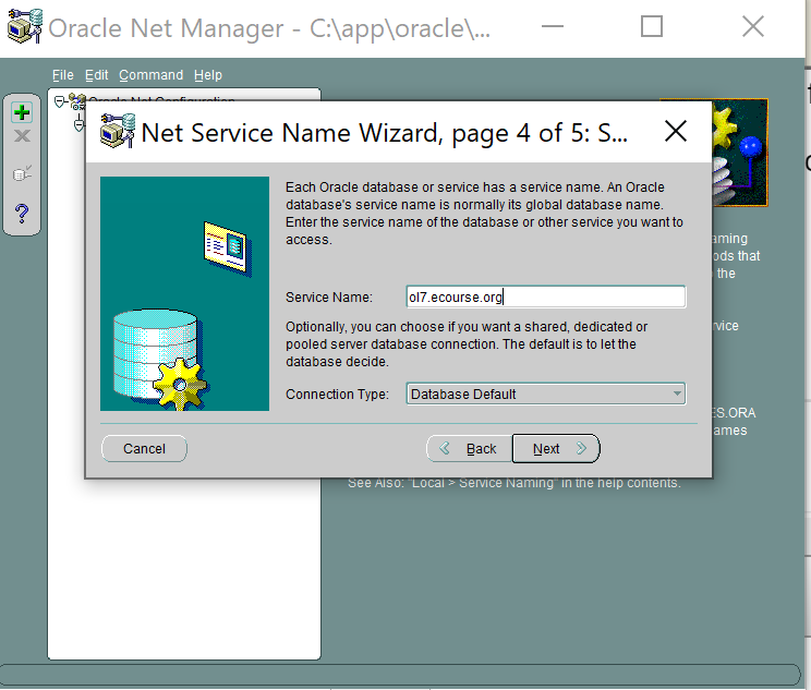 9. Enter ol7.ecourse.org as Service Name (see below)