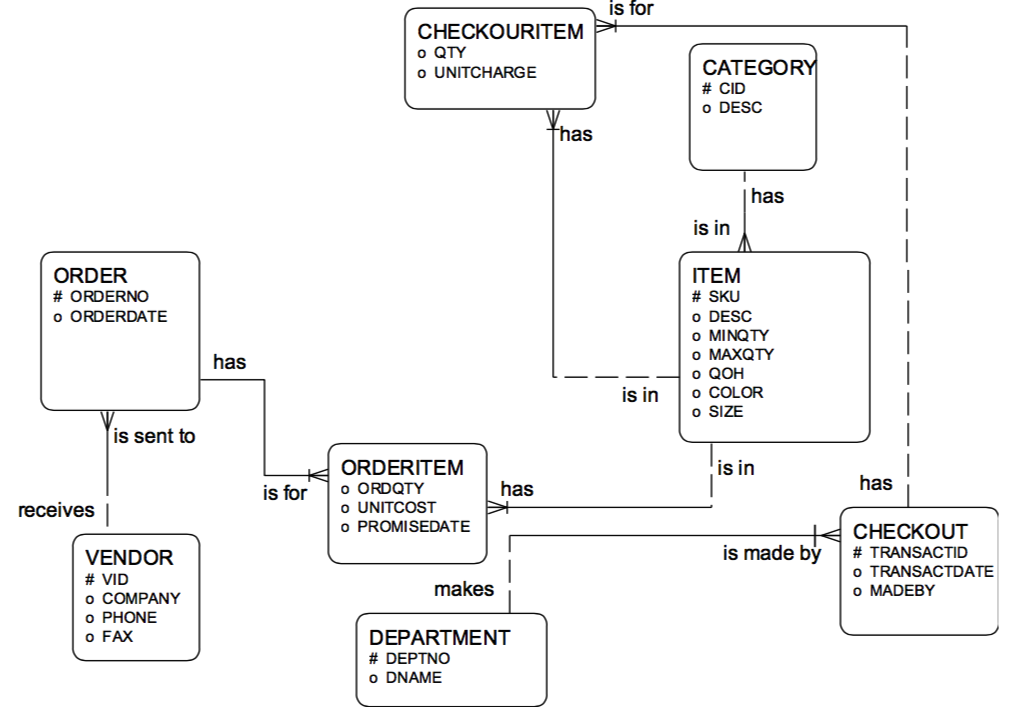 Transform the following E-R diagram into a relational model. Then create the database using Oracle.