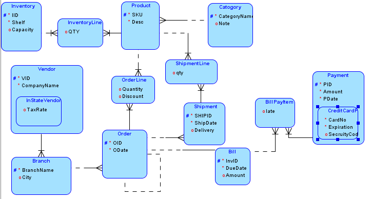 Example 1: Convert the ERD for Customer – Order – Product problem into the relational model