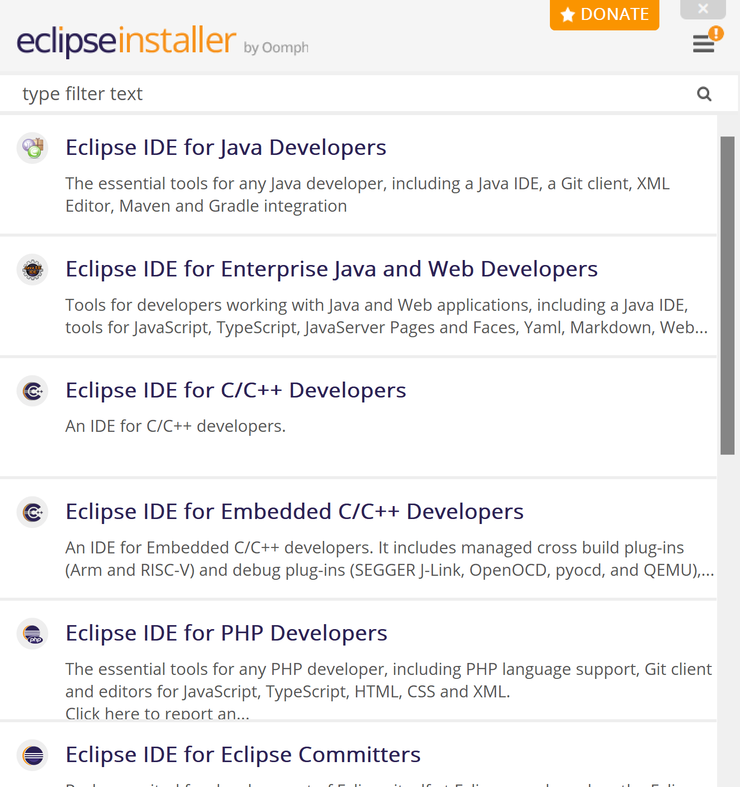 Launch the installer and choose the installation type. To learn java programming, choose IDE for Java Developers. To support JSP and Java Servlets, in the following we choose IDE for Enterprise Java and Web Developers.